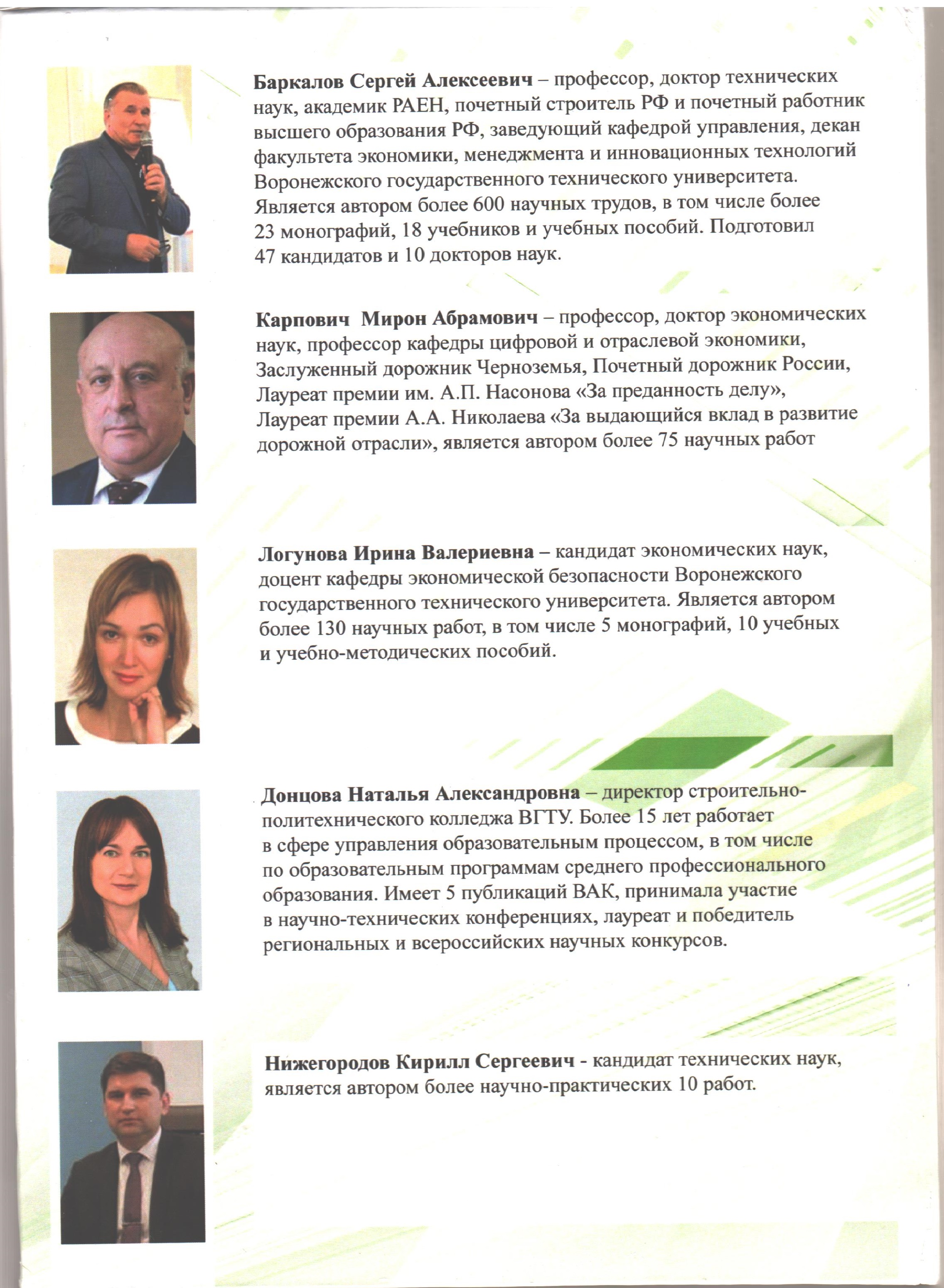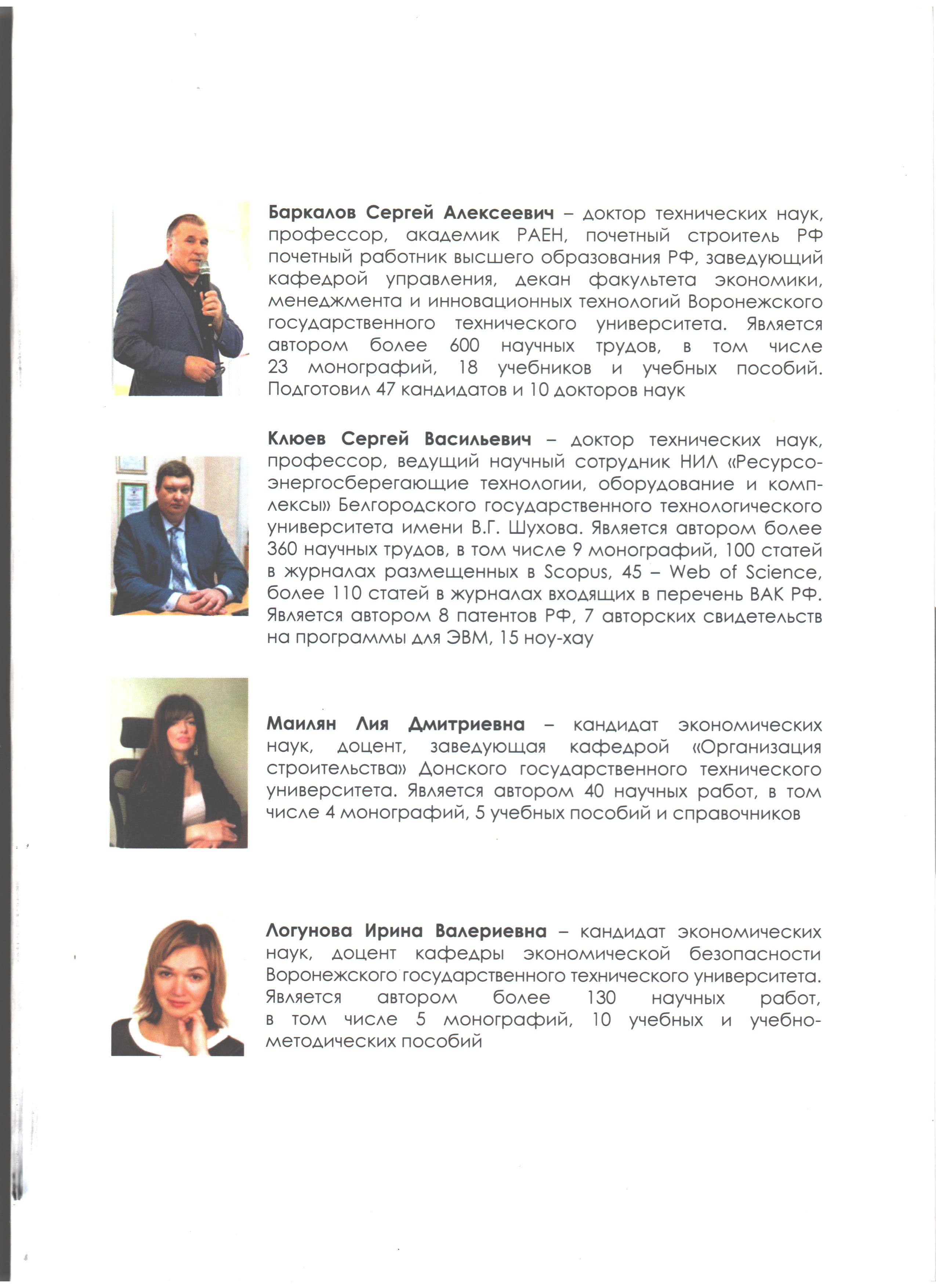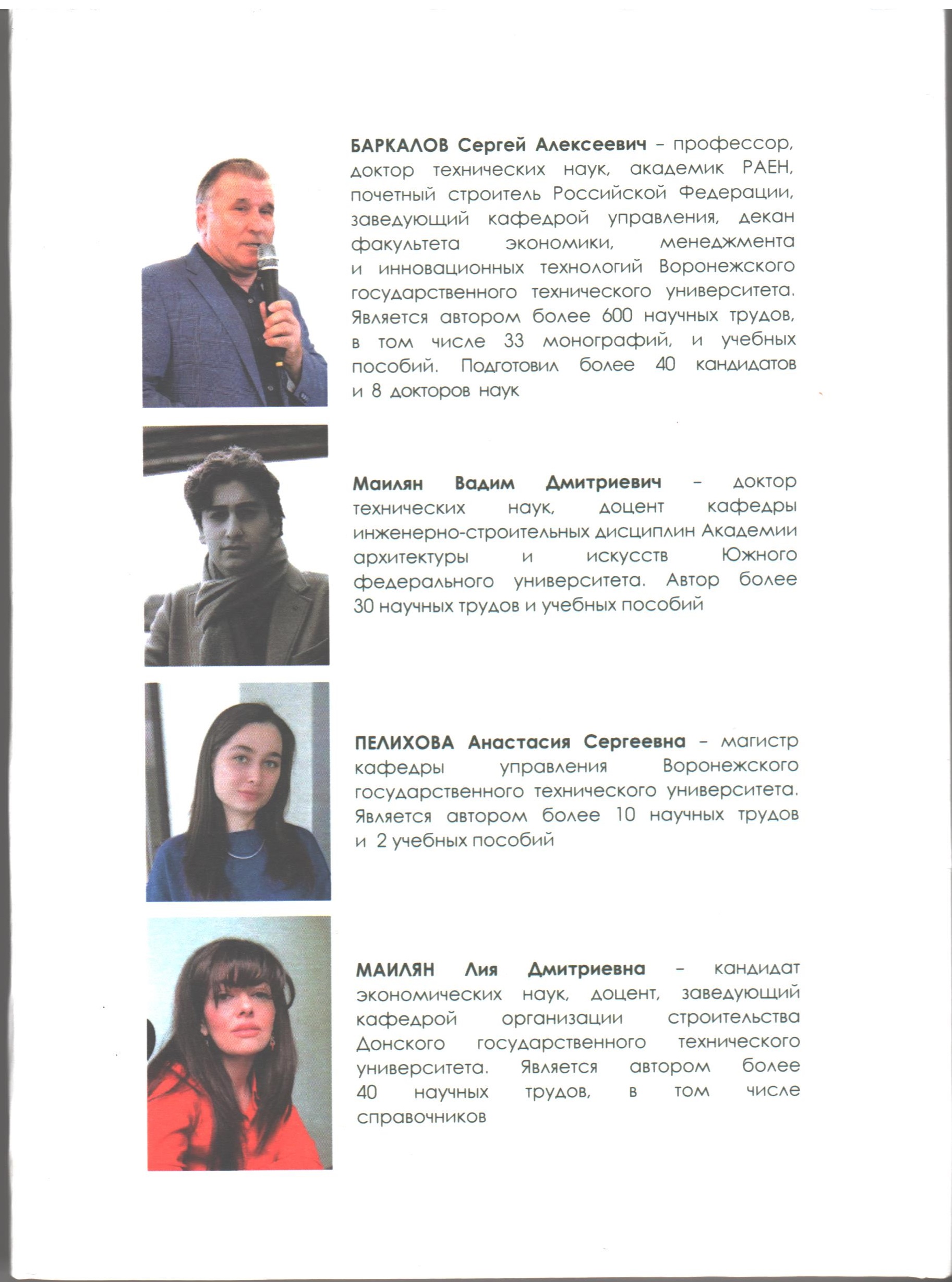 - Информационная система поддержки принятия инвестиционных решений в условиях неопределенности внешней среды/Монография/Морозов В.П., Мистров Л.Е./ Воронежский ГАСУ; Воронеж 2016. 2. Математическое моделирование конфликтов в социально-экономических системах/ Баркалов С. А., Новосельцев В. И., Санина Н. В. /: монография - Воронеж: "Издательско-полиграфический центр "Научная книга", 2017. 32 Табл. C. 246