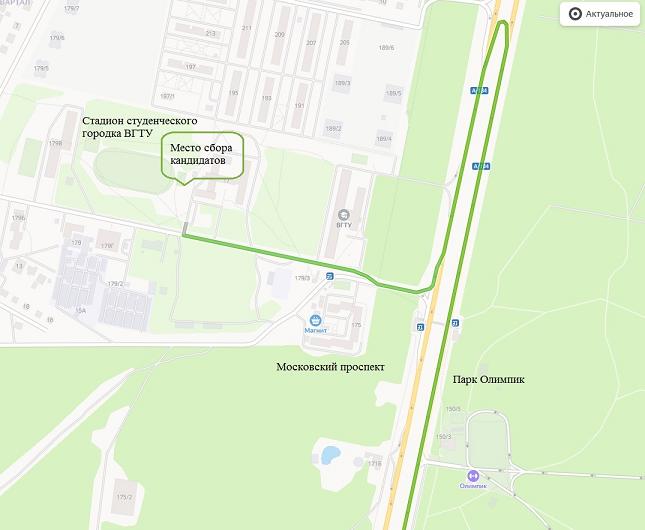 Сдача вступительных испытаний по физической подготовке будет проходить 23 июля 2024 г. в 8:00 по адресу: г. Воронеж, Московский проспект, д. 179. Стадион студенческого городка ВГТУ (9-й километр). Схема проезда в прилагаемом файле.