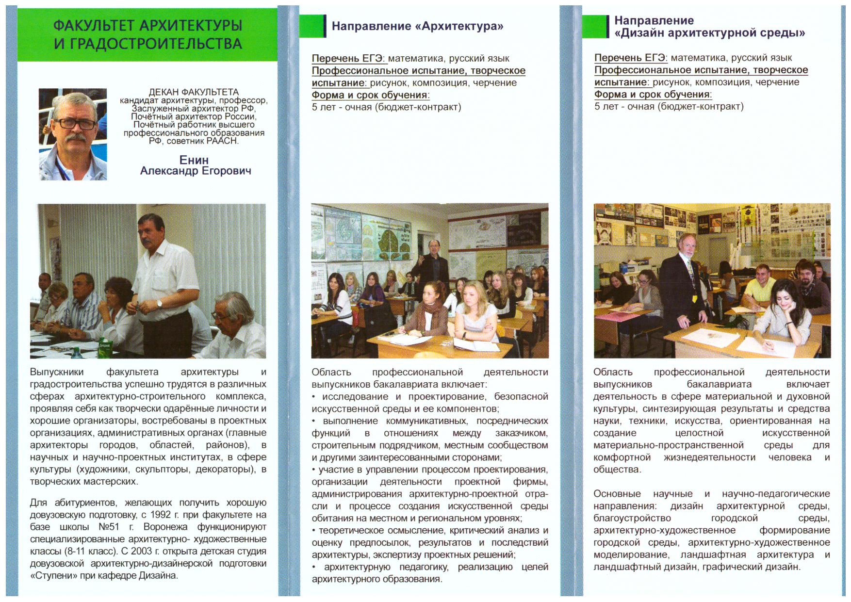 Уважаемые абитуриенты! 25 марта 2018 года факультетом архитектуры и градостроительства ВГТУ был проведен день открытых дверей. Если Вам не удалось посетить это мероприятие, Вы можете ознакомиться с направлениями подготовки в брошюре факультета (во вложении).