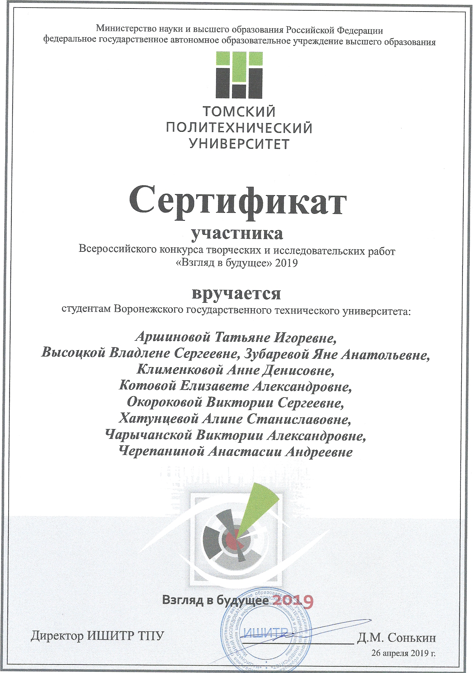 26.04.2019 г. были подведены итоги VII Всеросcийского конкурса "Взгляд в будущее" 2019.