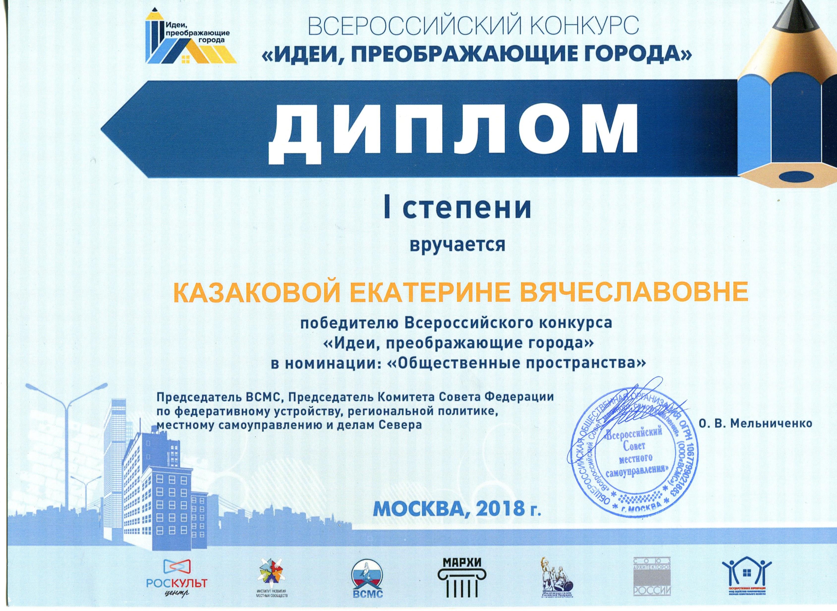 С марта по июнь 2018 года проходил Всероссийский конкурс «Идеи, преображающие города», направленный на выявление, сопровождение и поддержку талантливых молодых граждан, активно участвующих в планировании и создании проектов благоустройства городской среды в муниципальных образованиях Российской Федерации. В конкурсе приняли участие более 1500 человек из 85 субъектов Российской Федерации. Екатерина Казакова, студентка ФСПО, заняла 1 место в номинации «Общественные пространства» с проектом «Благоустройство и организация защиты города и садово-парковой среды». От всей души поздравляем Екатерину и желаем ей дальнейших успехов!