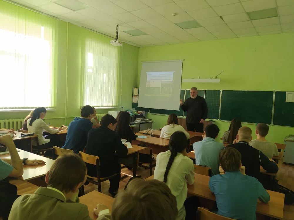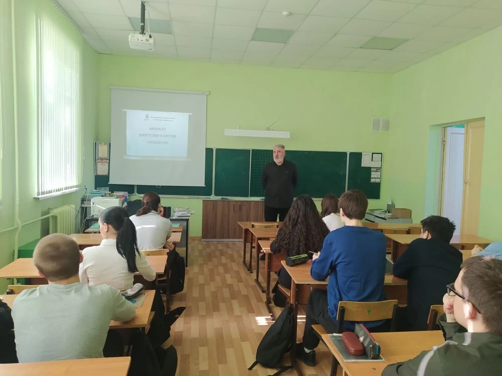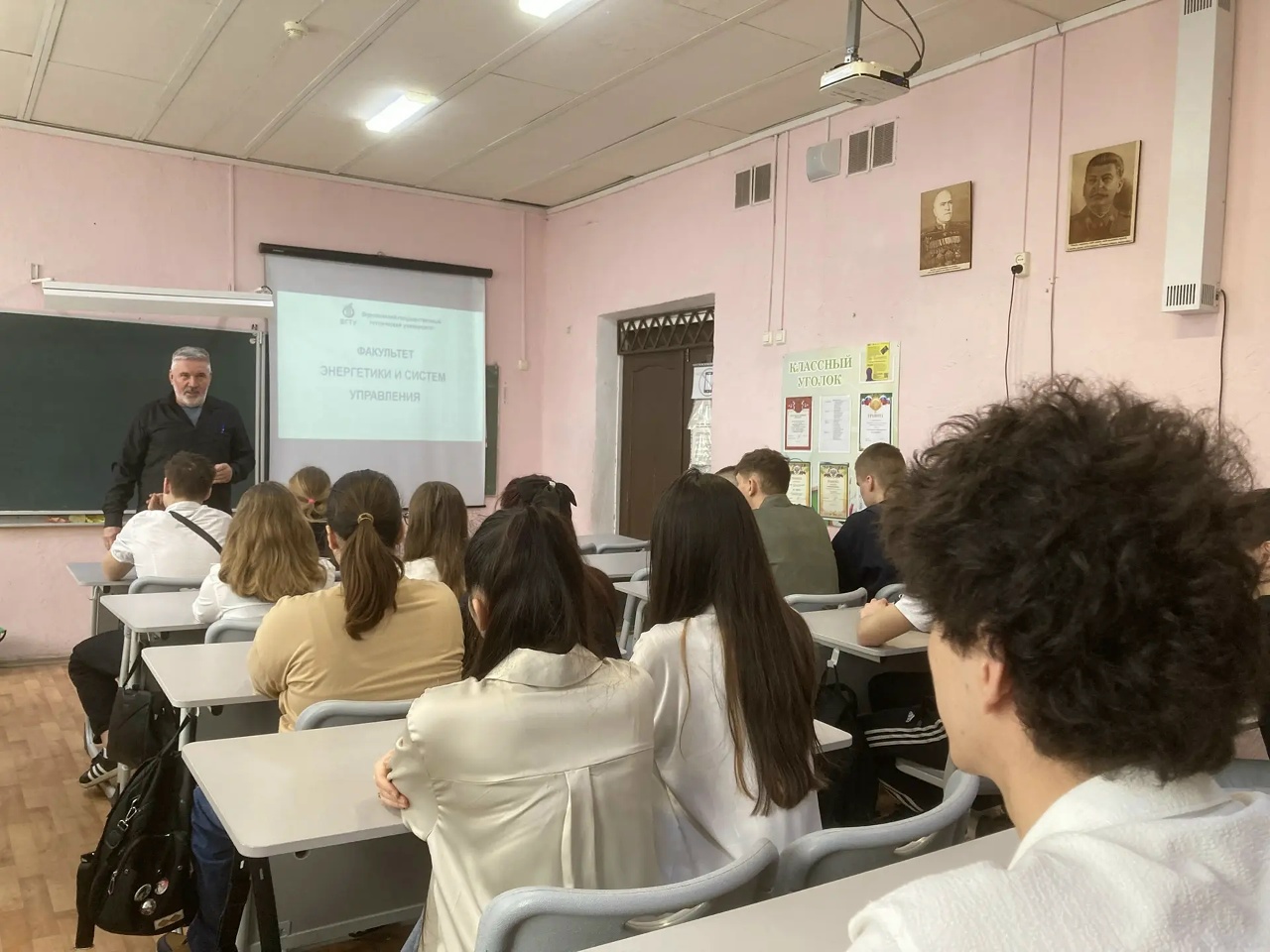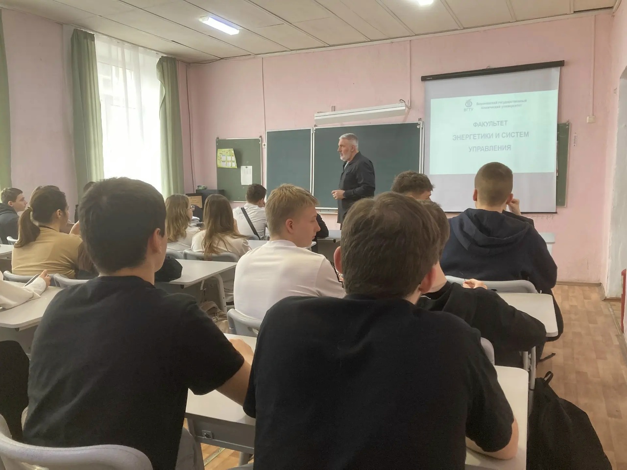 В минувший вторник представители факультета провели очередную встречу с учащимися выпускных классов. На этот раз заведующий кафедрой Владимир Портнов выступил перед учащимися 9. 10 и 11 классов школы № 44 города Воронежа, где рассказал о востребованности энергетиков в настоящее время, специальностях своего факультета, особенностях обучения и поступления, перспективах трудоустройства.