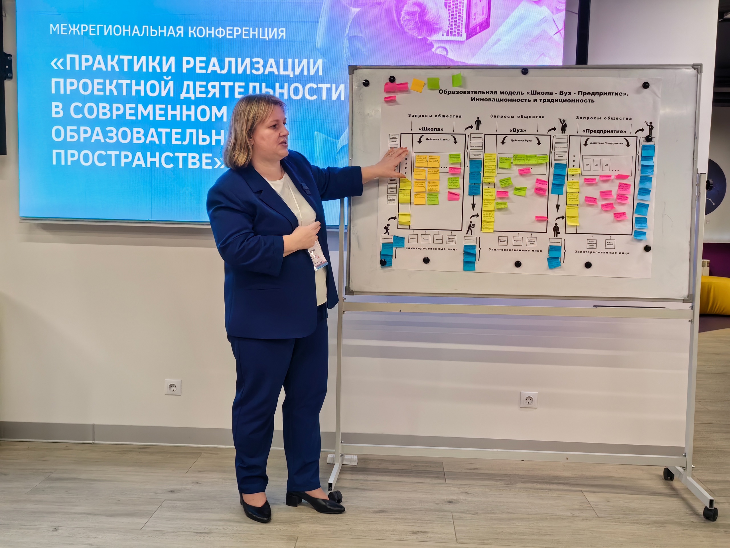 Второй день конференции проходил на площадке образовательного центра «Траектория». Преподаватели приняли участие в работке круглого стола «Успешные практики реализации проектной деятельности в школах: из опыта работы» и форсайт-сессии, которая была посвящена проектной деятельности в школе и вузе.